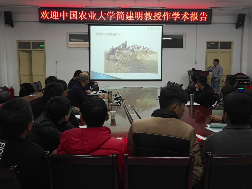 11月11日下午,应公司邀请,中国农业大学简建明副教授来公司访问交流,并在工科楼229作了题为《残膜污染与机械化治理技术》的专题报告,公司经理弋晓康,副经理侯书林、张宏、龚䶮及公司相关学科教师、员工到场参加。报告会由副经理侯书林主持。