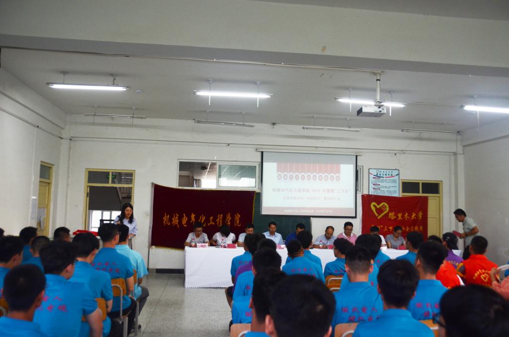 公司领导为各团队授旗。三名团队代表进行交流发言,分享了各自团队的准备情况和实践计划。张宏副经理分享了他在基层的工作的经历,希望同学们要以实际行动践行志愿者精神,展现塔大学子的责任与担当!