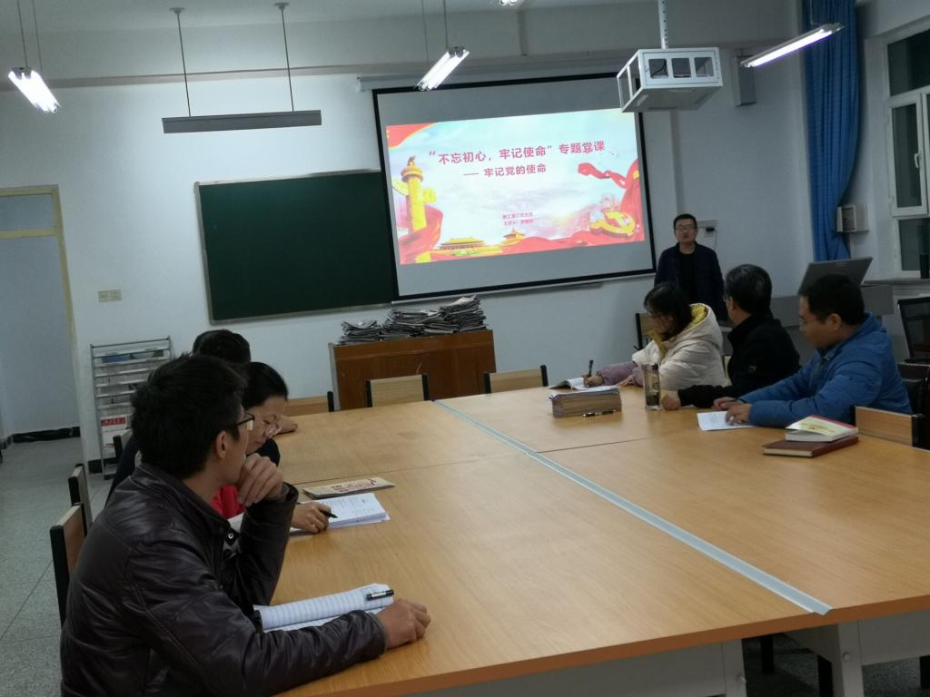 罗继东作了以《牢记党的使命》为题的专题党课,在授课中以习近平总书记提出的“不忘初心、牢记使命”为切入点,以教育行业中涌现出来的优秀教师为例,号召将“不忘初心,教书育人”的理念贯彻到每一个教工党员心中,用实际行动来践行立德树人根本任务和党员的先锋模范作用。