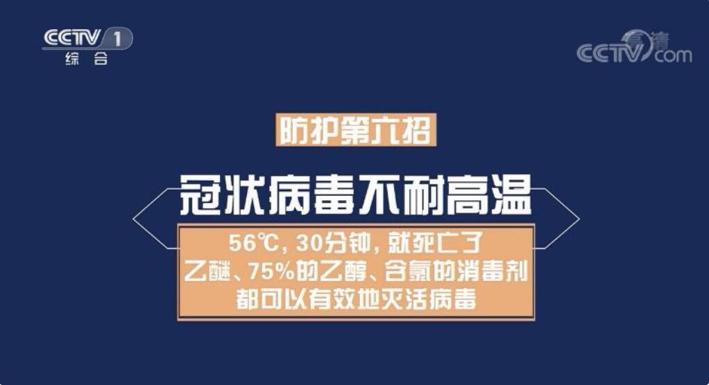 冠状病毒不耐高温。56℃,30分钟,乙醚,75%的乙醇,含氯的消毒剂等都可以有效地灭活病毒。