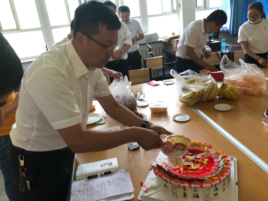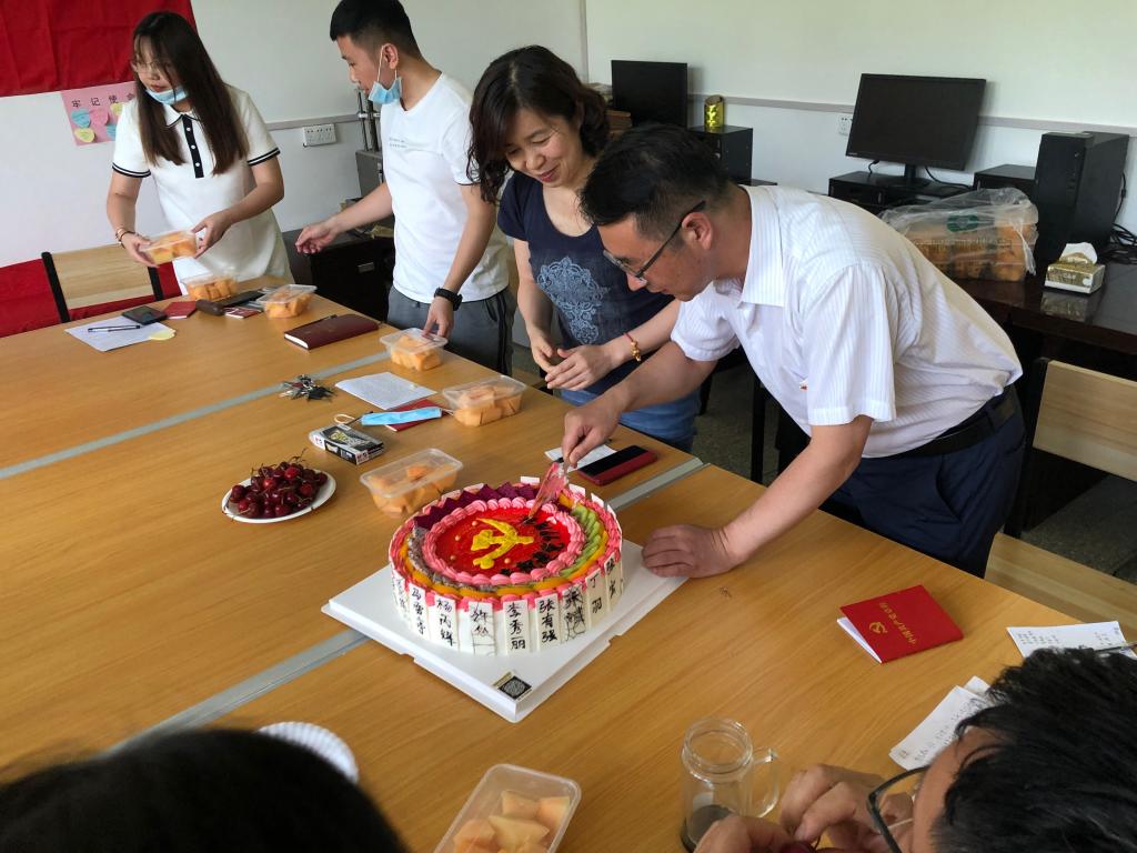 活动中,党支部精心准备了蛋糕。在王旭峰和张宏的带领下一起吹蜡烛,纷纷为党送上祝福。