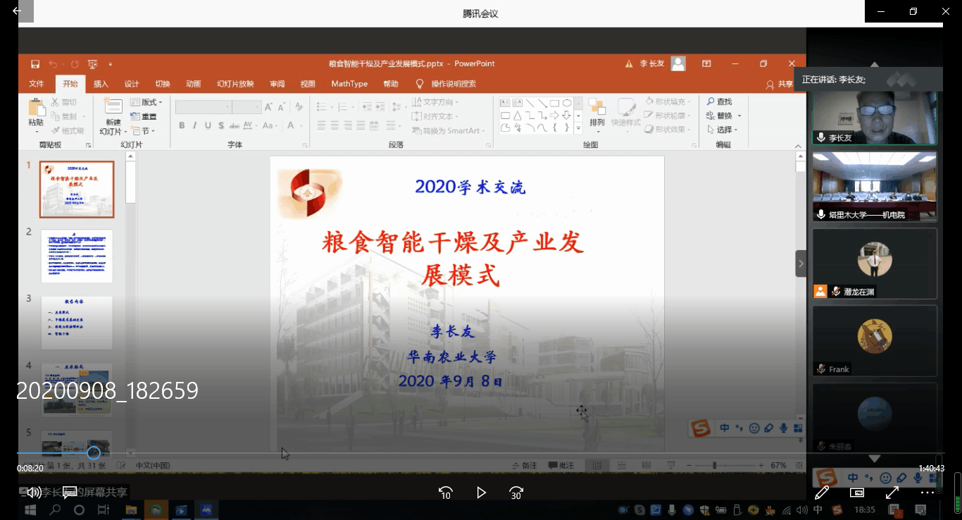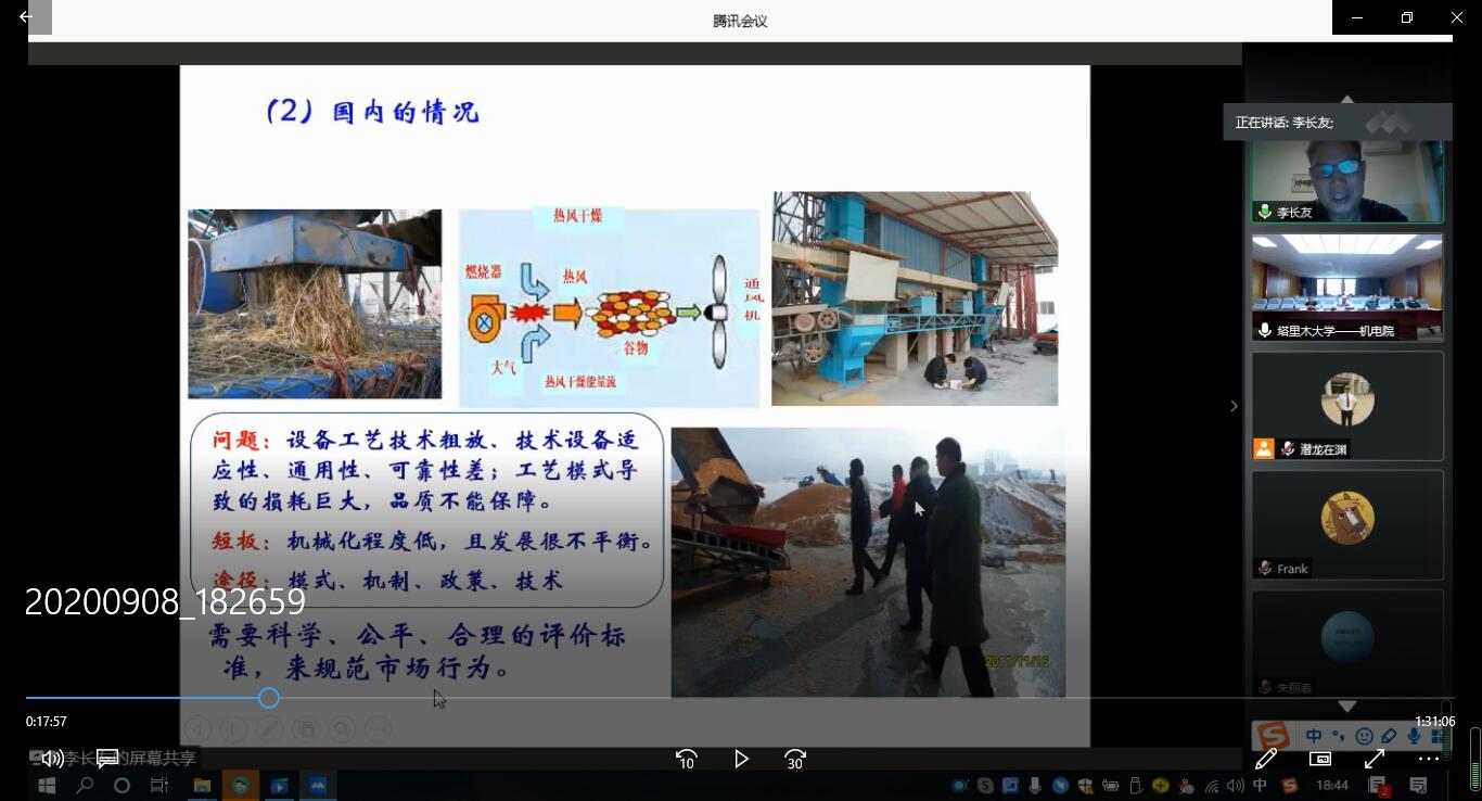 李长友教授作了题为《粮食智能干燥及产业发展模式》的学术报告。报告围绕粮食干燥的发展模式,干燥技术发展、传递与转化解析法,智能干燥等方面作了详细的阐述,同时结合公司院情况,为学院干燥团队的今后的研究方向提出了相关建议。