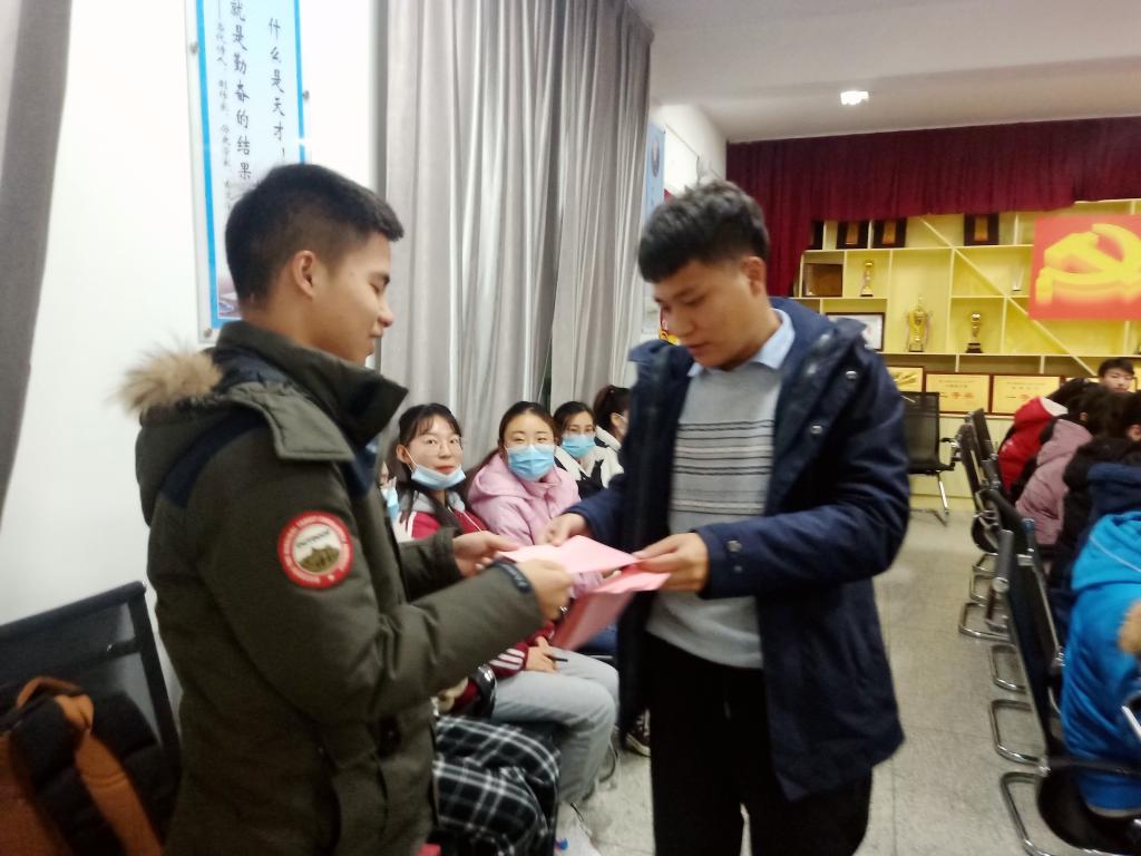 随后,孙天洋亲手为考研的同学送出了暖心卡片和每人一箱牛奶为礼物为他们加油祝福。刘鑫鋆说:“距离考研还有16天,我们考研的同学弦都绷得很紧,备考的日子都过的很苦很累,然后今天晚上党支部开展了考研暖心活动,给我们每个人都送上了祝福,给我们加油打气,还给我们送了礼物。当看到学弟学妹们给我写的祝福,心里感到特别温暖,很感动,感谢党支部感谢学弟学妹们在我们孤独的备考路上带来了温暖 ”。