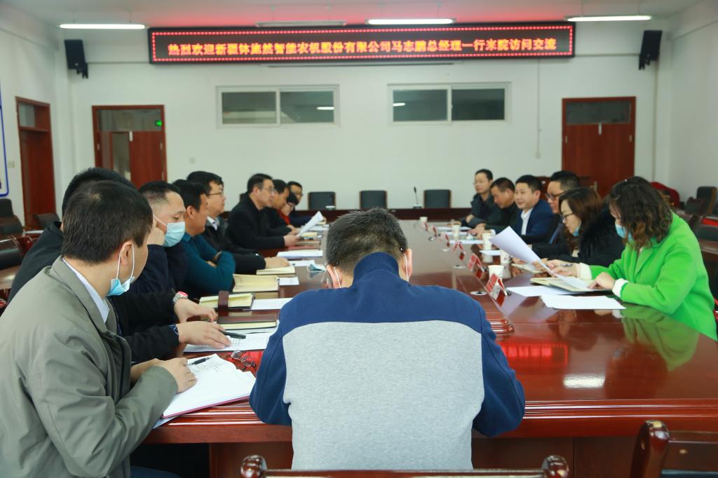 2月23日,新疆钵施然智能农机股份有限公司沙雅分公司马志鹏总经理一行6人来院访问交流。在工科楼229会议室召开座谈会,公司党委书记王红飙、经理王旭峰,副经理张宏、张有强及各系(中心)、员工工作办公室主要负责人参加了座谈交流,会议由王旭峰主持。