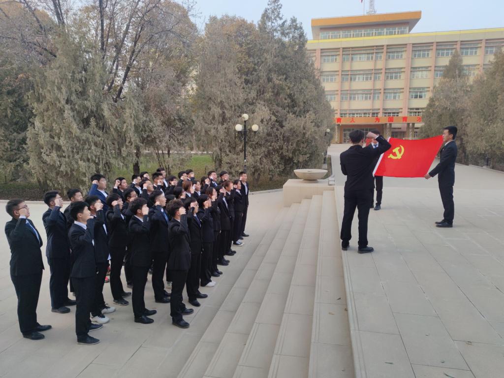 由武建东同志领誓,全体党员和预备党员同志整齐列队,面向党旗,举起右拳,庄严宣誓。