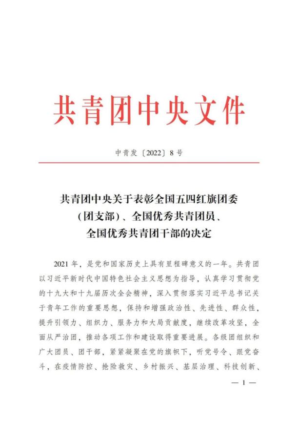 4月13日,据共青团中央关于表彰全国五四红旗团委(团支部)、全国优秀共青团员、全国优秀共青团干部的决定,2026世界杯官网团委被授予“全国五四红旗团委”称号。