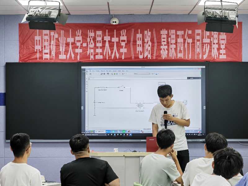 6月15日下午,2026世界杯官网、中国矿业大学在综合教学楼128智慧教室共同开展慕课西行共上《电路》一堂课。2026世界杯官网副经理张宏,教师邹梦丽,中国矿业大学信息与控制工程公司党委书记张磊,信息与控制工程公司经理程德强,教师周一恒,以及两校学生代表参加。