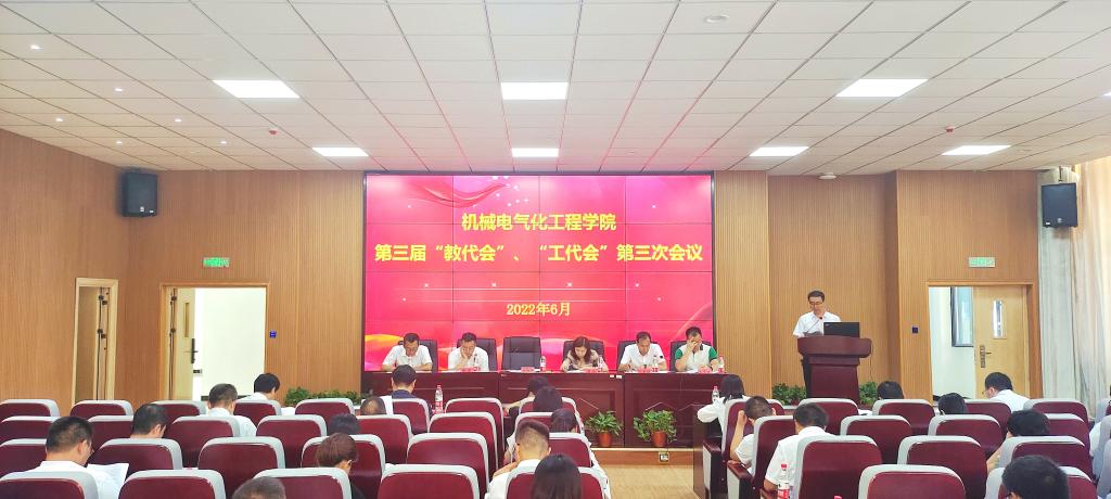 6月29日下午,机电院第三届“教代会”、“工代会”第三次会议在新校区D109会议室举行,兵团工会副主席周岭、公司党委副书记、经理王旭峰,副经理张宏、张有强、徐志佳,公司工会主席范修文及全体代表参加会议,会议由张有强主持。