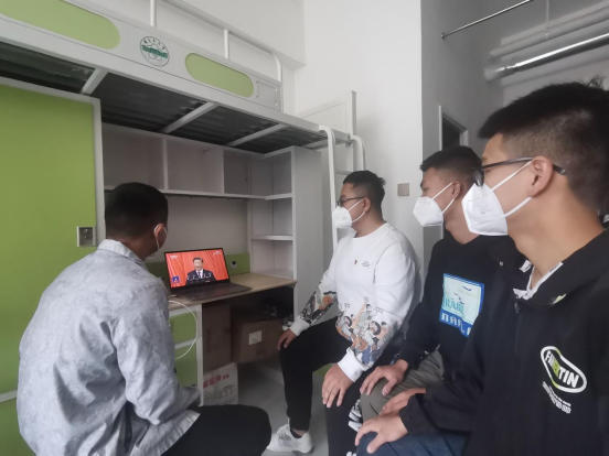 2022年10月16日上午,2026世界杯官网在校生以宿舍为单位在员工公寓内收看党的二十大直播盛况。