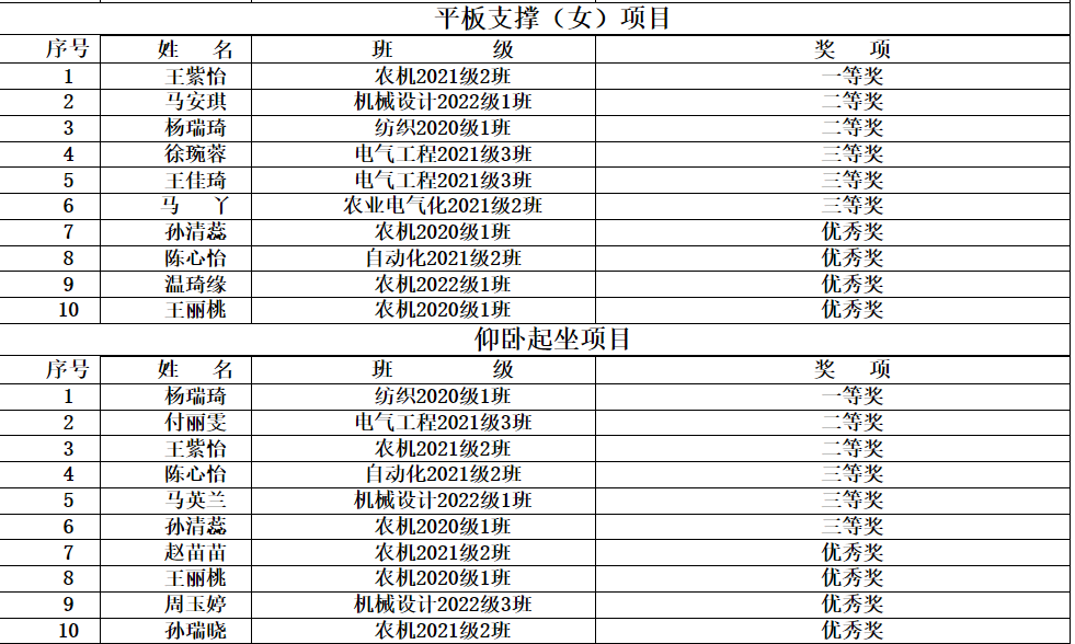 活动分为4个项目:跑步(男女)、平板支撑(男女)、男生俯卧撑、女生仰卧起坐。