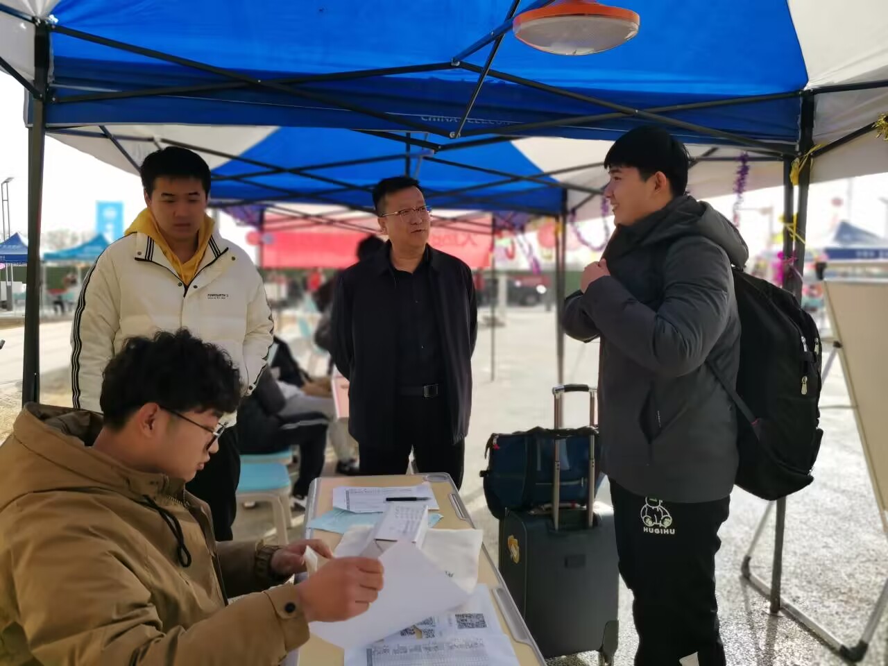 公司党委书记王旭峰,党委副书记李勇,副经理张有强、张辉来到公司报到现场迎接看望新同学,检查指导迎新工作,慰问迎新工作人员和志愿者。