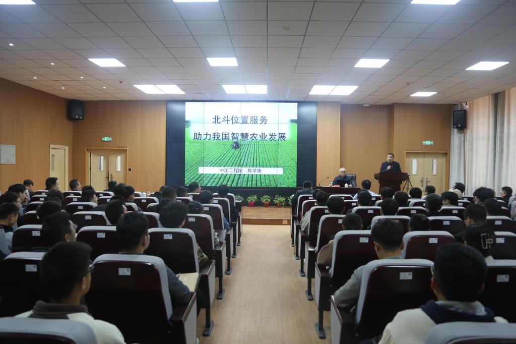 陈学庚院士作了题为“北斗位置服务助力我国智慧农业发展”的学术报告,结合国内外实际情况,从国外信息化技术在农业的运用、北斗位置服务在我国农业中的应用、我国智慧农业发展攻关目标三个方面进行了深入讲解,并与师生进行了深入互动。