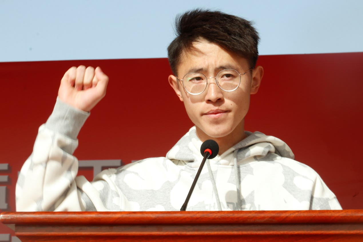 挺胸迈阔步,英姿飒爽;青春永无悔,斗志昂扬