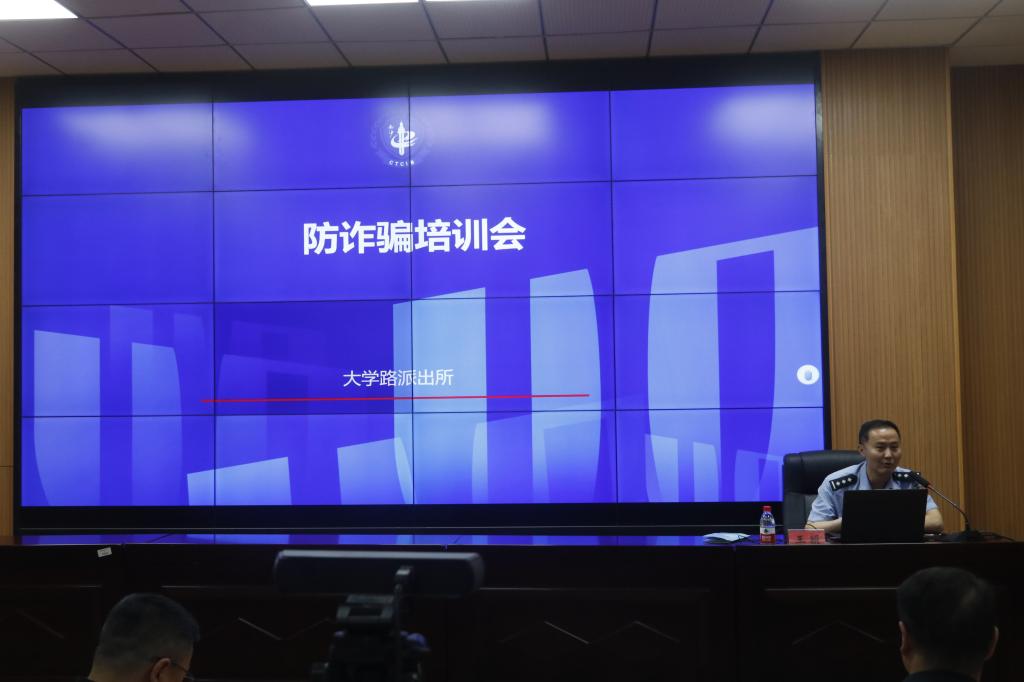 为切实提高全院师生对电信网络诈骗的辨别能力和防范意识。5月10日,公司邀请大学路派出所王颖警官为公司师生开展防范电信诈骗培训会,公司党委书记王旭峰,党委副书记、经理张宏,党委副书记李勇,师生代表150余人在D109现场参加培训,各班级在教室观看钉钉转播。此次会议由李勇主持。