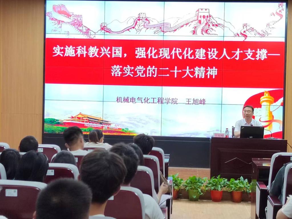 5月31日下午,公司党委书记王旭峰以“实施科教兴国,强化现代化建设人才支撑——落实党的二十大精神”为题,在东扩区D109讲授主题教育专题党课,电气工程系全体教师、电气工程系员工党支部全体党员60余人参加了学习。