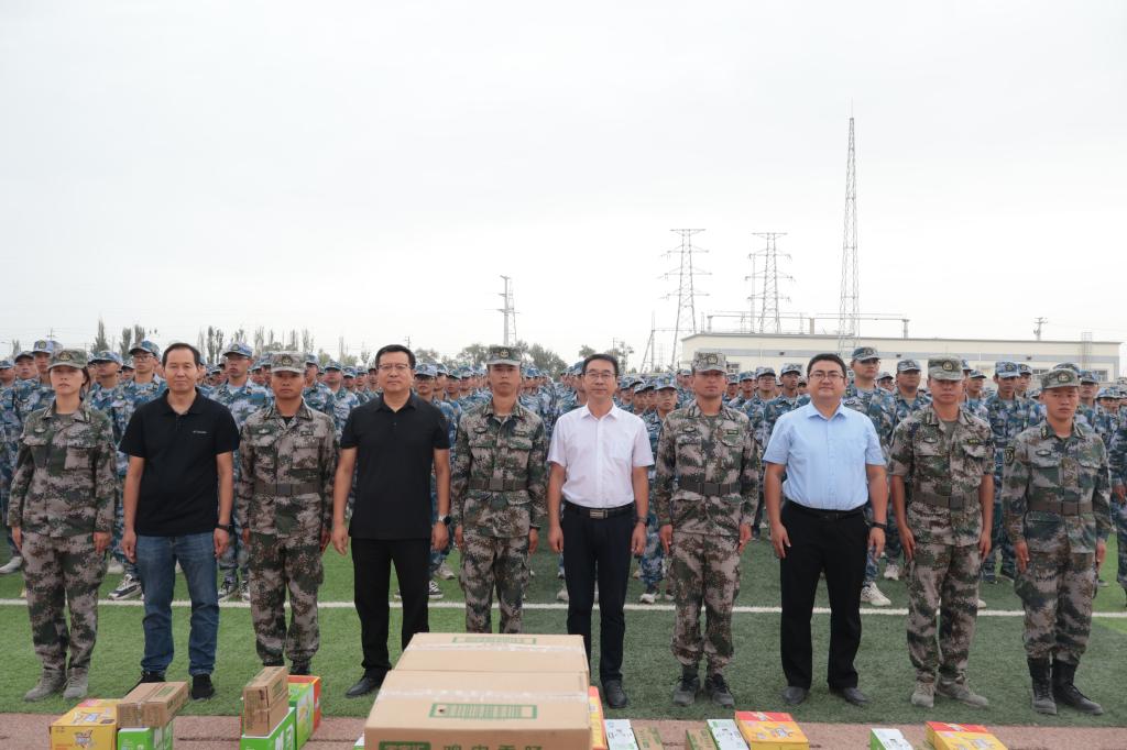 为鼓励2022级员工坚持完成军训任务,8月28日上午,公司党委书记王旭峰、经理张宏、党委副书记李勇、副经理张有强和公司全体辅导员以及各参训班主任来到东扩区一期训练场地,代表公司看望军训员工、带训教官及一线保障队伍。