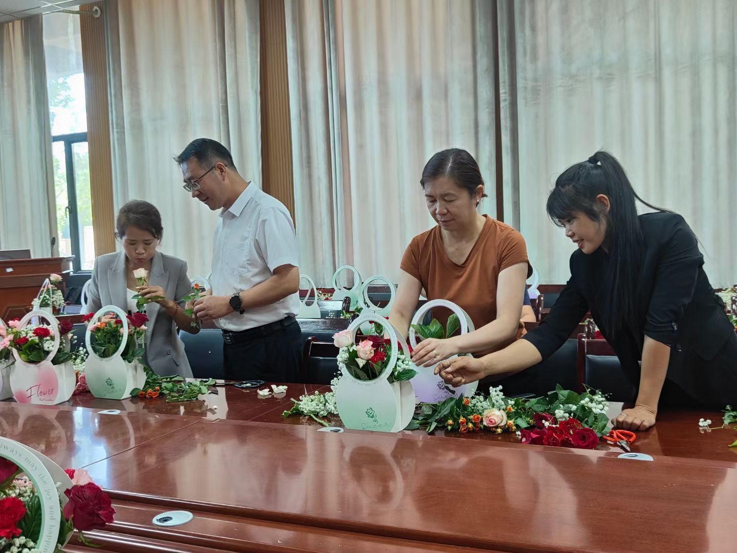 三尺讲台育桃李,一支粉笔写春秋。在第39个教师节来临之际,为弘扬尊师重道的中华民族传统,表达对教育工作者的感谢,2026世界杯官网工会于9月6日下午举办了以“爱的礼物,感恩花束”为主题的插花活动。
