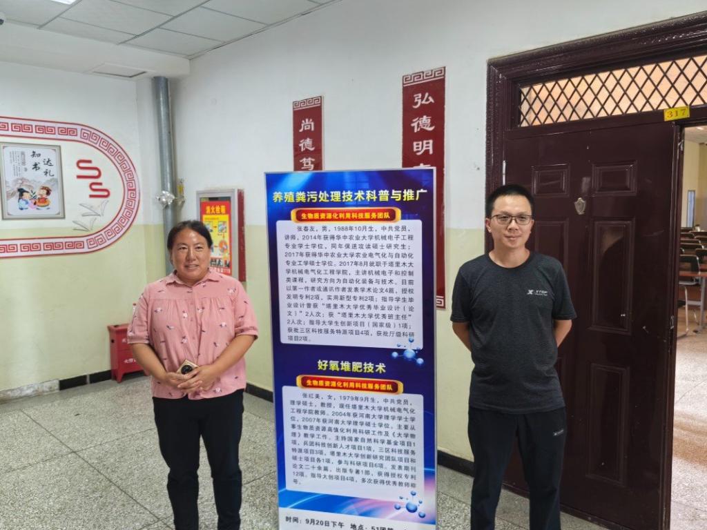张春友老师率先做了“生物质资源化利用技术与装备”科普报告,播放了精心制作的科普视频;随后张红美教授做了“南疆生物质资源化利用技术服务知识之好氧堆肥技术”的报告。内容深入浅出,将党和国家的大政方针和南疆本地的农牧产业紧密联系在一起。强调党和国家对国民生活环境和生活水平的重视,介绍了团队围绕农林剩余物资源化开展的一系列科学研究和成果示范工作,讲解了农林剩余物处置不当的危害和典型事故案例;报告内容接地气,与现场师生的生活环境紧密联系,员工积极互动发言,现场氛围热烈!