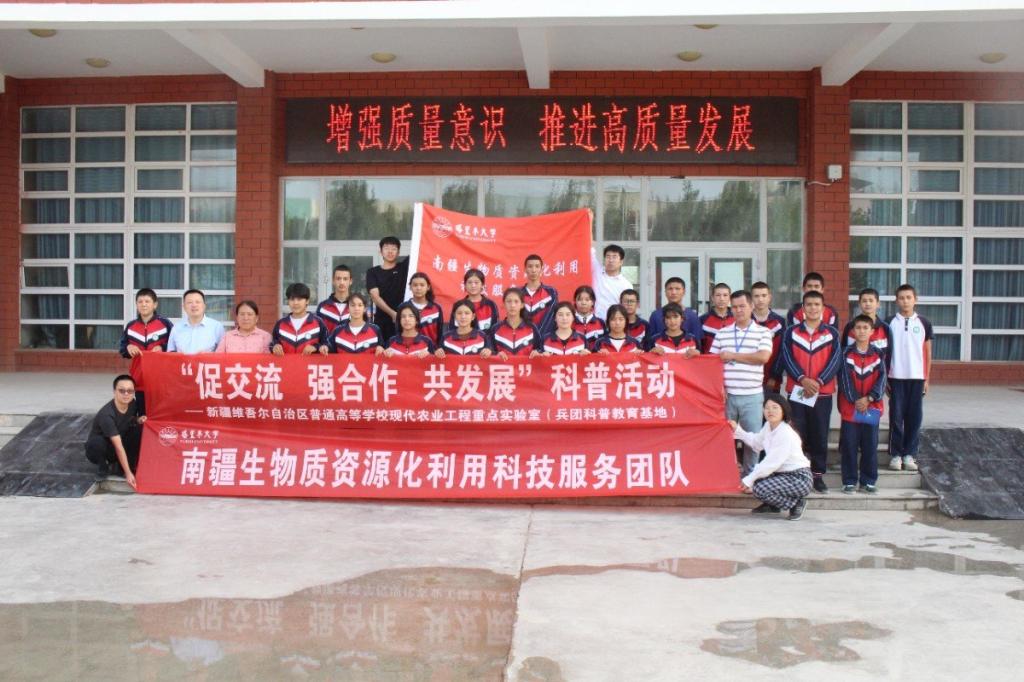 报告结束后团队一行在图木舒克市科技局、科协和51团第一中学相关部门工作人员的陪同下与部分师生合影留念。