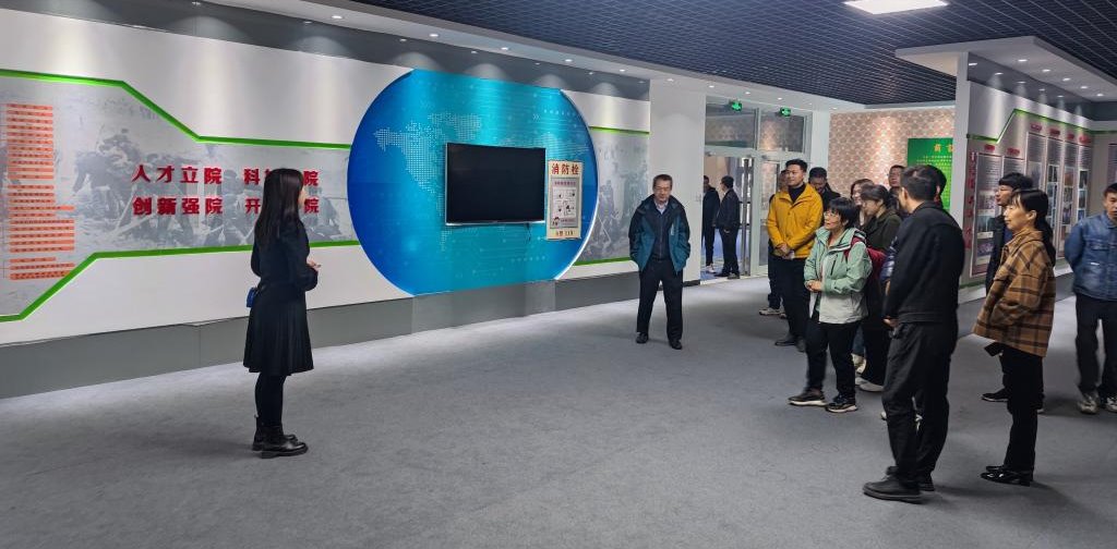 汤智辉所长带领我们参观新疆农垦科公司历史博物馆、介绍了受过国家领导人接见的院士事迹、研究所生产的科研成果样机,在参观过程中双方就相同研究方向的科研情况等进行了交流。
