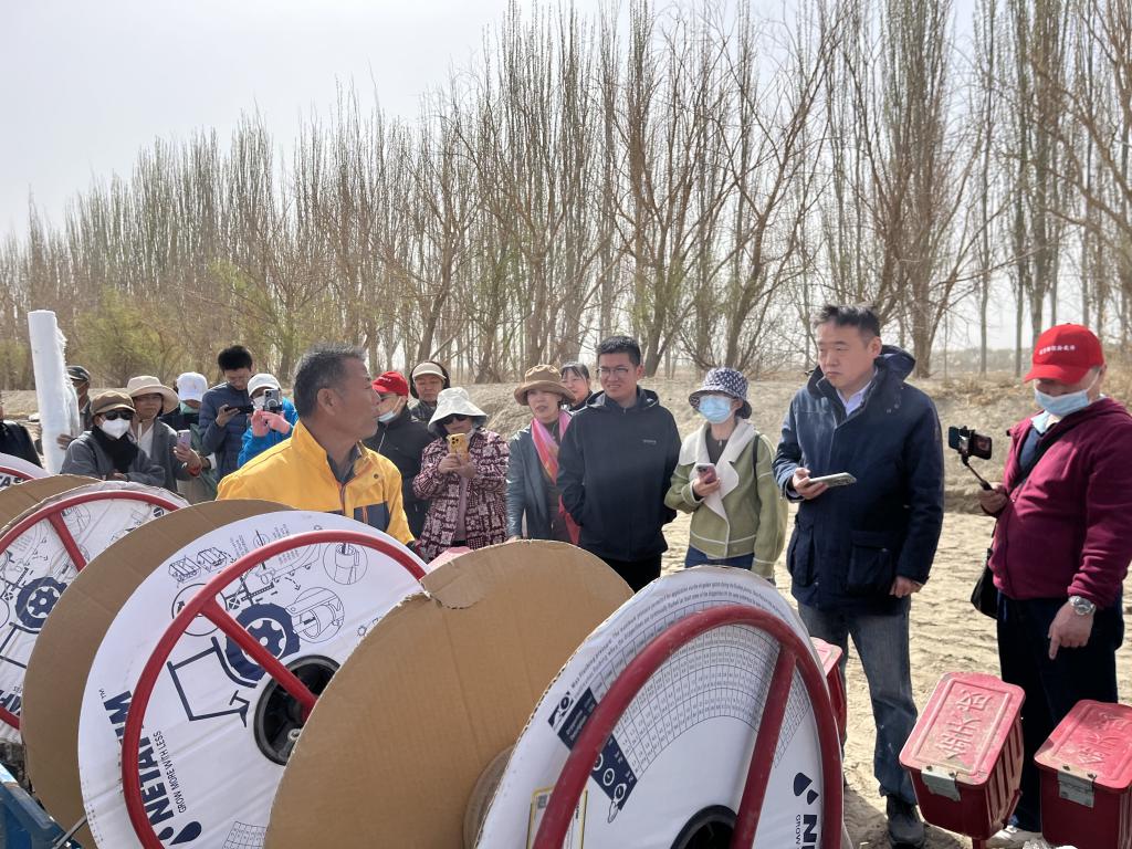 公司青年教师和银龄教师参观棉花春播的过程,在棉田的田间地头与种植户就棉花播种、灌溉、地膜铺设等问题进行了深入交流。