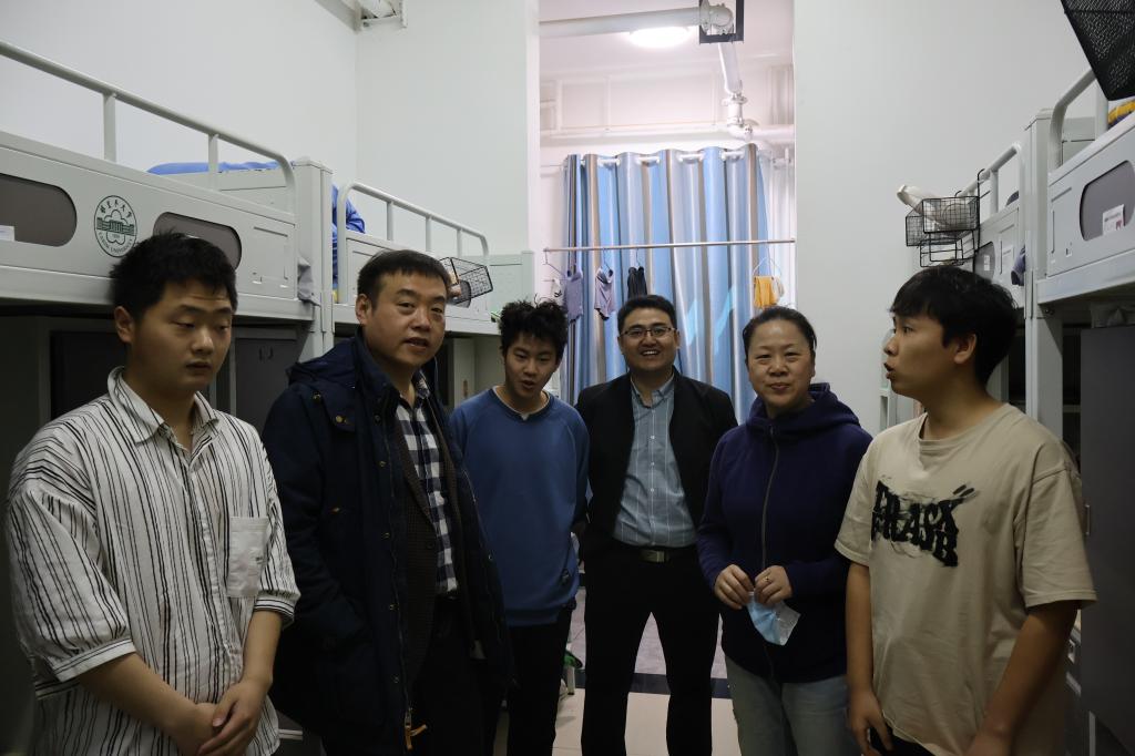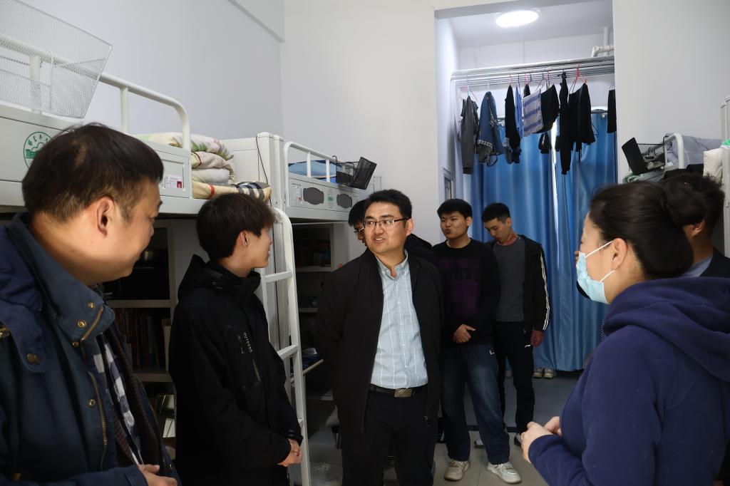 钟毅一行人来到新校区一期员工公寓1号楼、2号楼、3号楼、新校区三期10号楼进行走访慰问,向他们致以节日的问候和祝福,深入了解员工们的生活学习情况,认真倾听他们的心声,和他们唠家常、讲心事,并叮嘱同学们要坚定理想信念,努力学习拼搏,共同构建和谐、平安、文明的宿舍氛围,注重体育锻炼,保持身心健康,在青春的赛道跑出好成绩。