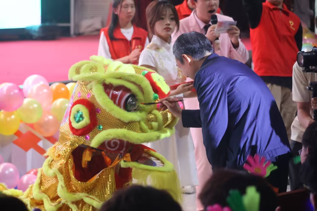 在暖场的“醒狮”环节中,汤董事长为舞狮点睛,赋予狮子生命力和活力。他手持朱砂笔,一点左眼,灵气满身,祝愿机电公司蓬勃发展,二点右眼,志在乾坤,祝愿塔大学子再创辉煌。现场的氛围被推向了高潮,传来阵阵热烈的掌声。
