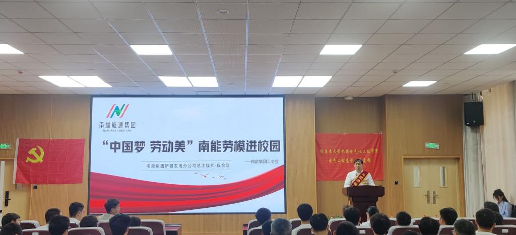 此次活动旨在通过校企双方的紧密合作,聚焦电力、新能源行业,以“新”为主题,探索校企共建新模式,培养高素质人才,推动产教融合,实现资源共享、优势互补、互利共赢。活动共围绕两个部分,全体同志在新校区一期机电楼D109会议室参加南能集团组织的宣讲会,听取南能集团青年代表,公司领导和劳动模范的交流分享。在宣讲会结束后一部分同志前往南能集团新疆发电分公司参观学习,一部分同志陪同南能集团青年代表到公司“我们这5年”展馆进行实地参观。此次活动让同志们对电力行业工作的认识得到加强,今后的就业规划有了更为深刻的认识。