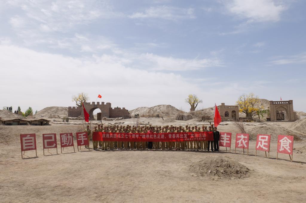 到达教育基地后,进行“扎根促生产”情景剧排演活动,有的人拿镐、有的人拉犁、有的人挑着扁担,再现三五九旅战士们屯垦戍边的光荣岁月,大家切身感受到了老一辈兵团人在自然环境恶劣和物资缺乏的情况下,是如何用青春和热血诠释“热爱祖国、无私奉献、艰苦创业、开拓进取”的兵团精神。