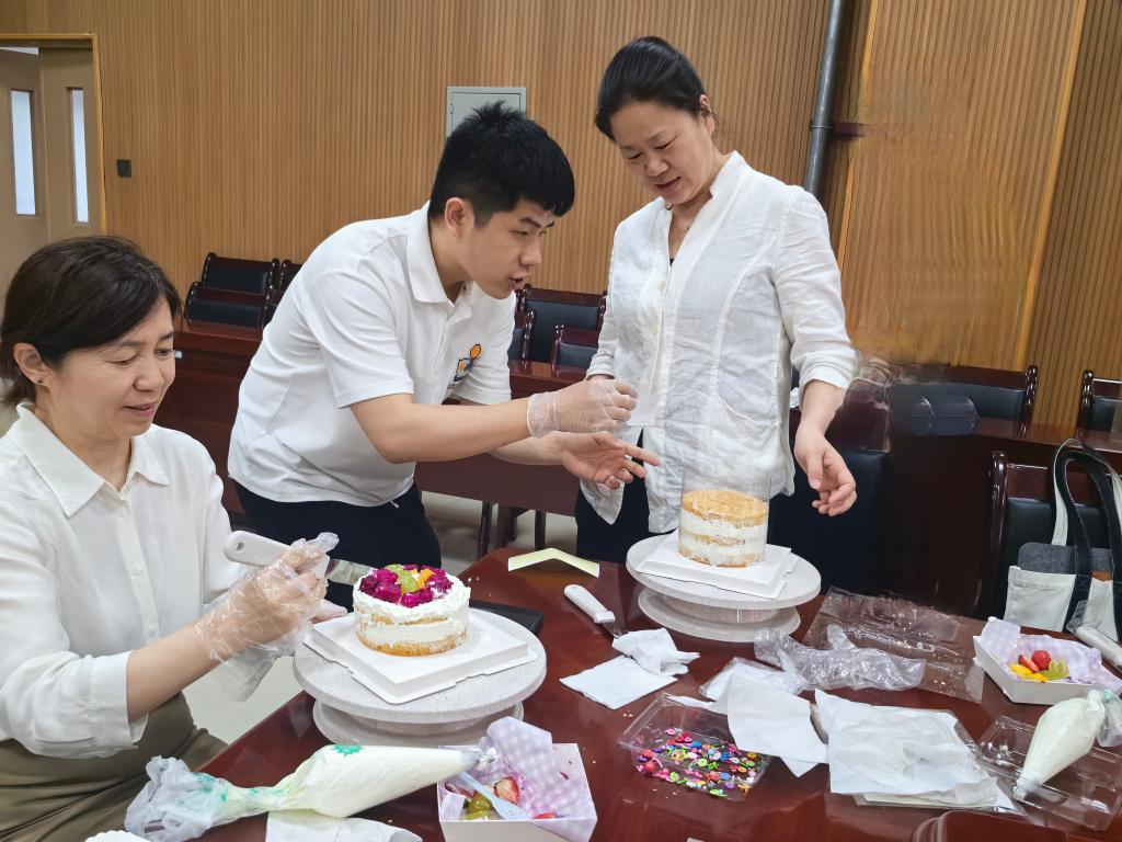 活动现场,烘焙老师详细讲解烘焙知识和制作技巧,大家聚精会神认真听讲,互动交流,专注制作,现场笑声朗朗,气氛活跃。随后,大家迫不及待地动手操作,充分发挥创意,有的拿裱花画出石榴籽和石榴花,有的用甜甜的奶油写出民族团结的字样……一个个蛋糕坯变成了一个个生动有趣的创意蛋糕,大家一同沉浸在收获的喜悦中,每个人的脸上都洋溢着幸福满足的笑意。