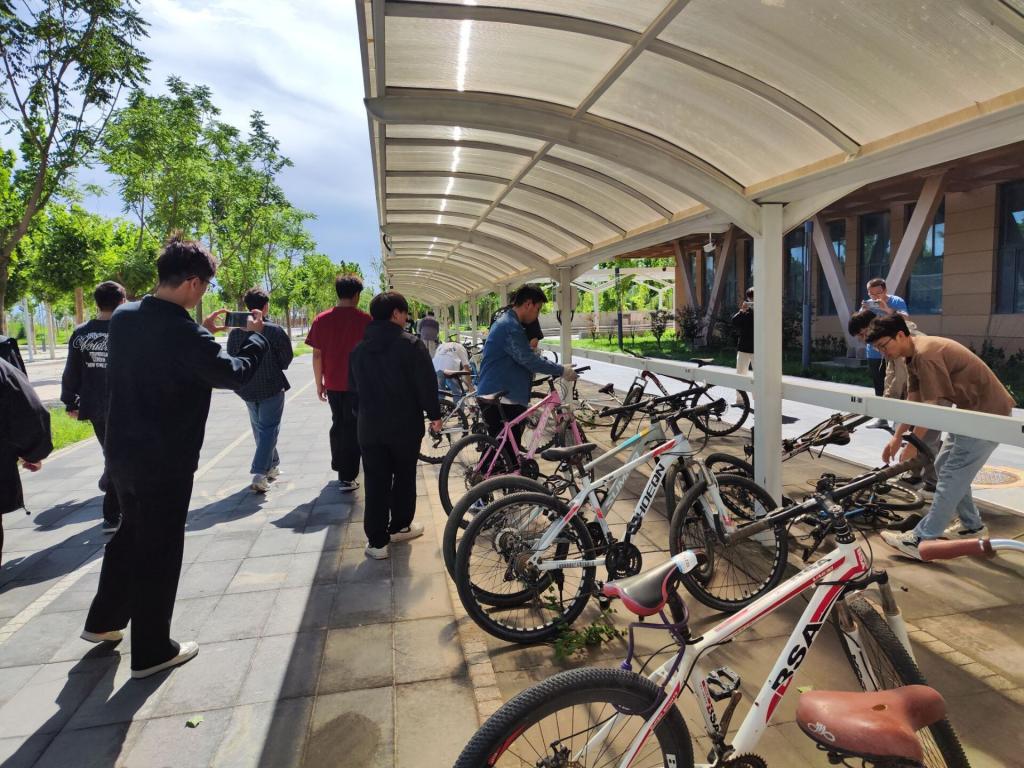 员工党员们迅速集结,手持工具投入到紧张的整理工作中。大家分工合作,齐心协力,迅速而有序地完成了整理任务。经过努力,原本散乱的自行车和电动车被整齐地摆放在指定区域,校园交通秩序得到了有效恢复。