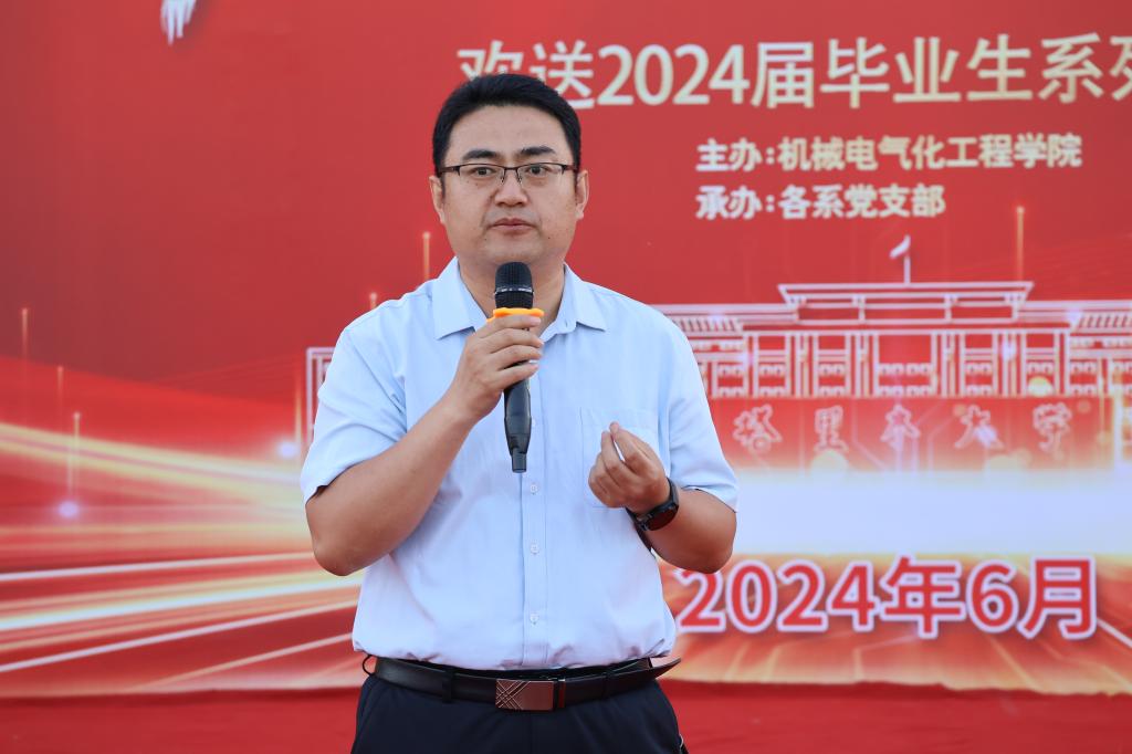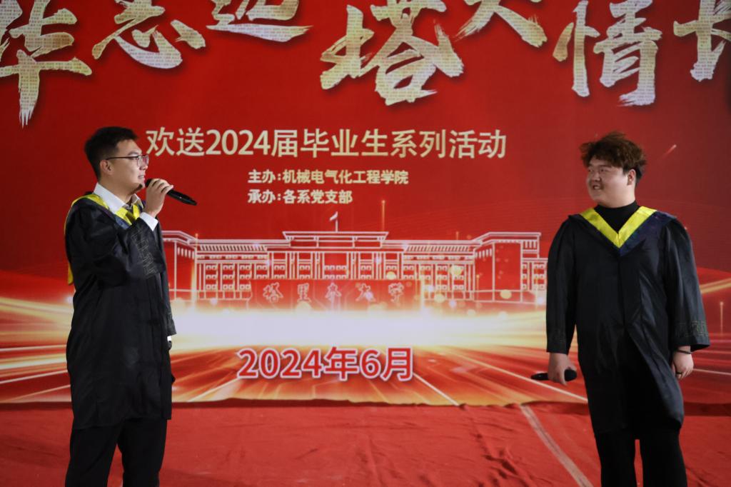 时光匆匆,又是一年毕业时;华灯闪烁,音乐响起;着一身盛装,齐聚一堂,共同演绎青春的华章。6月5日晚,机电院农业工程系党总支、研究生党支部在新校区一期机电院田径场开展“青春向党,载梦启航”暨欢送毕业生晚会。公司党委副书记、副经理(援疆)、纺织服装公司经理钟毅,党委副书记、纪委书记李勇,农业工程系党总支书记范修文、研究生党支部书记董翻过、农业工程系员工党支部书记任永强及各位领导嘉宾亲临现场,共同观看了此次晚会。