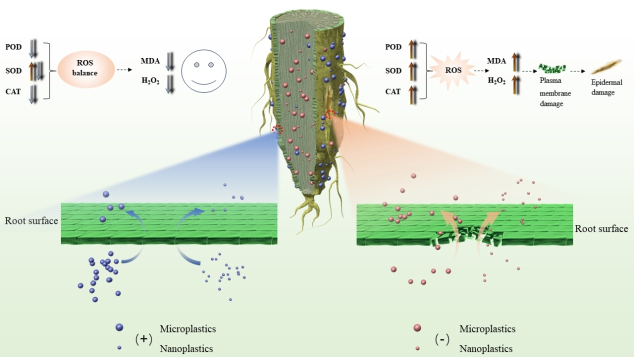 论文中重新定义了纳米塑料和微塑料的尺寸界限,并打破了这一领域的常规认知,揭示了纳/微塑料表面电性对高等植物吸收纳/微塑料过程中起到的重要作用,有助于了解植物吸收微塑料的主要方式与过程,研究结果可为微塑料塑料与植物间的互相作用机理提供新的见解,能为作物生长科学管理提供帮助。