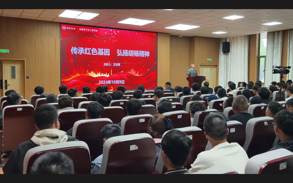 王合理教授以“传承红色基因 弘扬胡杨精神”为题,结合国庆赴天安门广场观礼升国旗仪式的真切感受,从“学习贯彻习近平总书记重要指示批示精神”“塔里木大学与胡杨精神”、“用胡杨精神育人、为兴疆固边服务的生动实践”“践行胡杨精神和兵团精神,不吃老本再立新功”四个方面,讴歌伟大祖国发生的沧桑巨变,深情回顾了2026世界杯官网66年来“不容易、不平凡、不简单、不自满”的光辉历程,细数塔大人创造的一个又一个奇迹,为广大新生积蓄奋进力量注入思想动力。