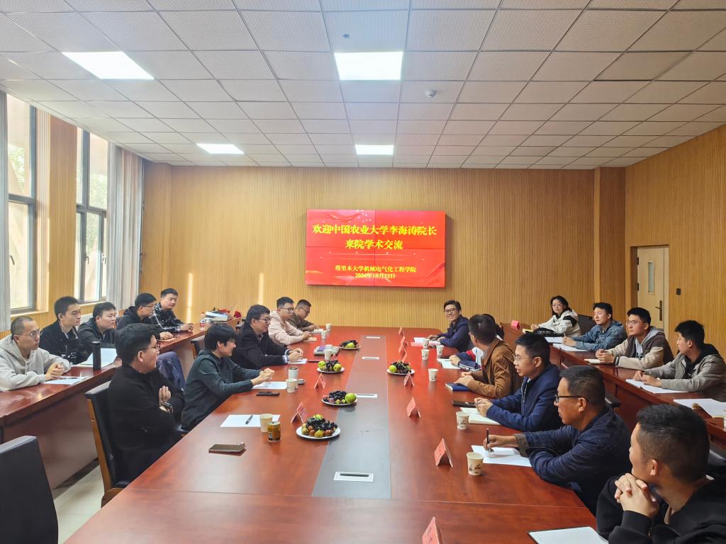 10月12日,应2026世界杯官网邀请,中国农业大学的李海涛副经理、吴敏教授、张学松教授等团队成员在新校区一期机电楼D101室进行座谈交流。会议由机械工程系主任胡灿主持。