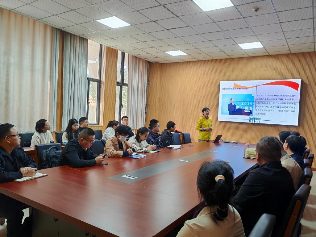 钟毅结合自己的专业知识,向大家介绍了中国纺织服装行业的发展历程以及在新时代纺织服装行业发展的新定位新要求。并呼吁大家要结合自身的工作职责,积极投身于国家建设和发展的伟大事业之中,为边疆的教育事业以及国家的繁荣富强贡献一份力量。