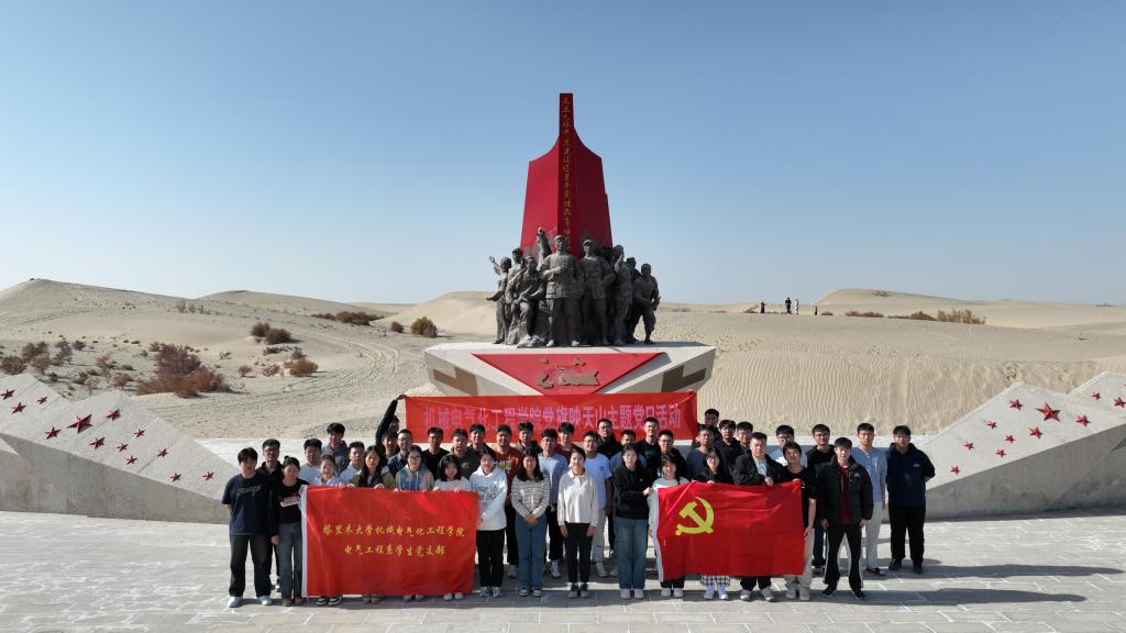 为深入学习沙海老兵精神、践行胡杨精神,强化党支部凝聚力,11月3日上午,电气工程系员工党支部开展了“胡杨映初心,沙海铸使命”党旗映天山主题党日活动,全体党员共同参加。