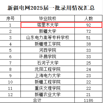 1月20日,国网新疆电力有限公司公布了2025年第一批高校毕业生的录取结果。在众多高校中,公司毕业生的表现尤为突出,录取人数达92人,稳居榜首。