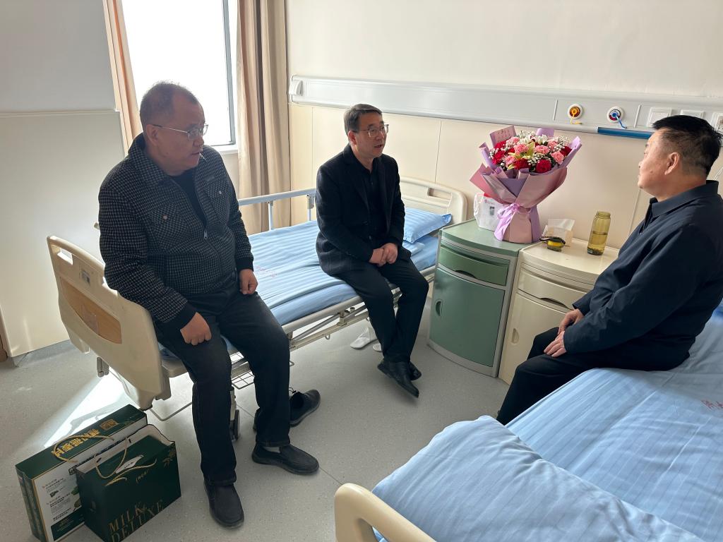 3月12日上午,公司党委书记王旭峰、工程基础系副主任柴学平等一行前往阿拉尔市邵逸夫医院,看望慰问公司银龄教师胡炳全,向他致以亲切问候和崇高敬意,并送上鲜花、营养品及公司师生的祝福。