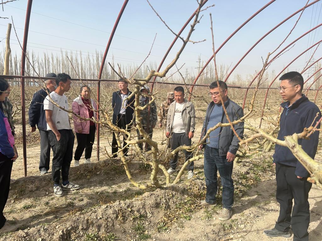 团队还就各连队种植的林果进行技术指导,重点就蟠桃相关修剪、嫁接、浇水与施肥、病虫害防治、冬季管理等进行指导和培训,保证果实的品质和产量。团队针对设施草莓、设施桃树和设施樱桃种植开展推广活动。