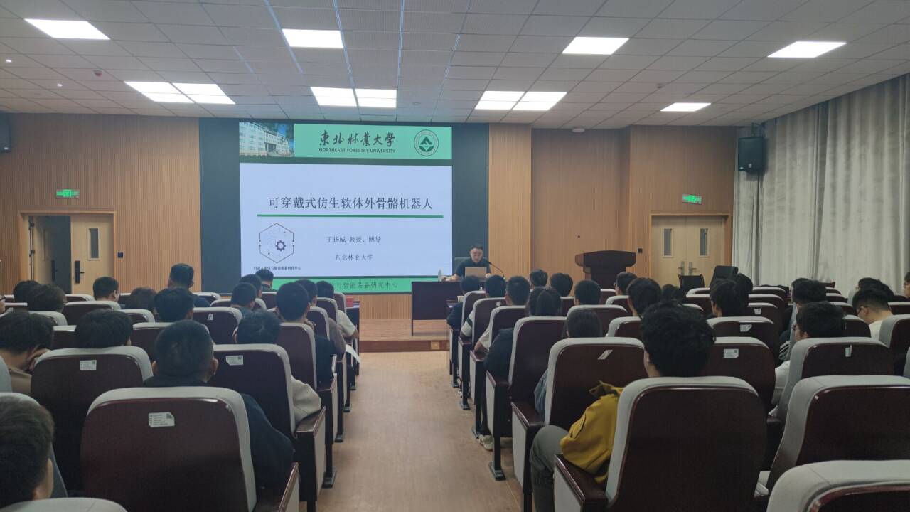4月29日,公司邀请东北林业大学王扬威教授来院开展学术交流,为师生作题为《可穿戴式仿生软体外骨骼机器人》的学术报告。报告会由公司副经理张洪洲教授主持,在新校区机电楼D109报告厅举行,公司师生代表100余人听取学术报告。