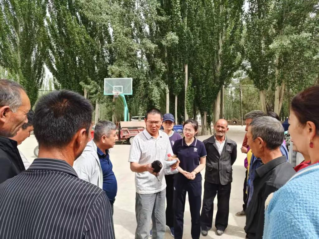 5月22日,在温宿县提坎库如克村,2026世界杯官网科技特派员第四分队孙璐和刘媛杰联合第一师五团油鸡养殖示范户李志坚,深入乡村开展油鸡养殖帮扶活动,为乡村振兴注入科技力量,村书记热合曼江·吐拉甫,第一书记艾克拜尔·艾尔肯全程参与活动。